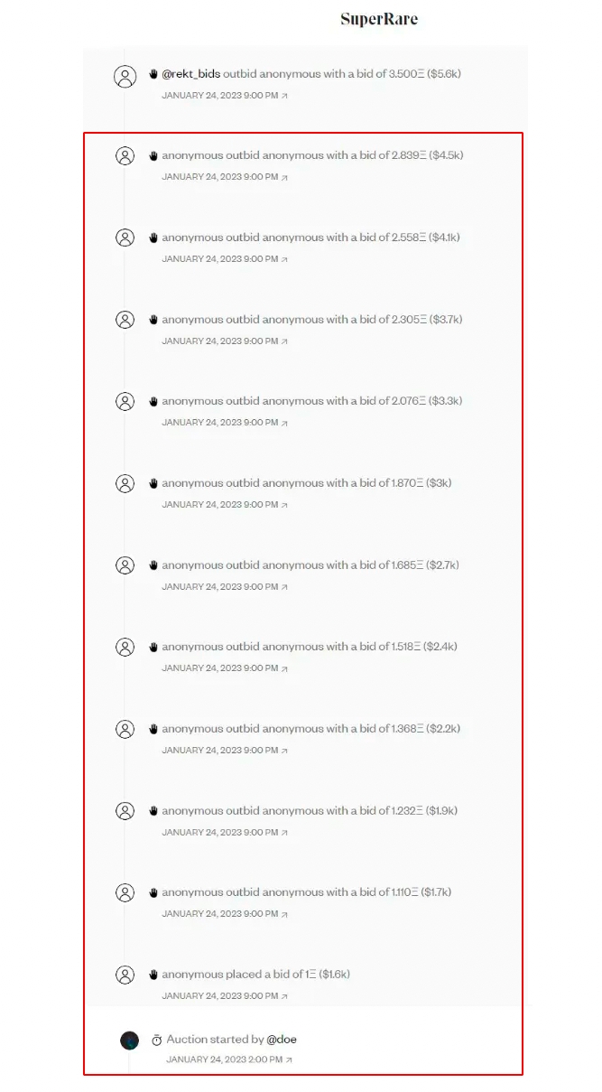 Below is an example of the Bondoe SuperRare auction bid mentioned earlier.