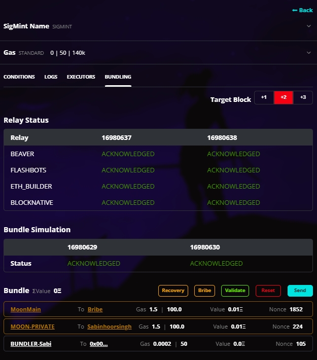 Bundles prevent users from losing gas if transactions fail, hides user gas settings to reduce the odds of being out-gassed, and is the best way to compete in flip state blocks. MEV bundles can also be paired with our Katana contract minter, to give you a competitive edge with transaction gas efficiency.